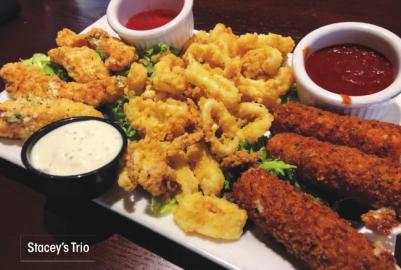 Stacey’s Trio – Boneless chicken wings, calamari and hand-cut mozzarella sticks. I don’t know who Stacey is, but her trio is delicious. I’m an expert when it comes to fried cheese sticks, and these are massive and delicious. This sampler platter is served with three different dipping sauces, because one dipping sauce is definitely not enough.