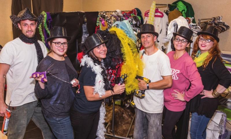 Much of the event is built on-site at The Downs, because the sets are quite large – each piece is about 16 feet tall by 8 feet wide. Diesel Driving Academy helps with transport, delivering 10 big rigs filled with supplies and materials. How many supplies and materials go into transforming the venue? 2,800 pounds of glitter, 145 gallons of paint, 1,000 strands of twinkle lights, and miles of recycled paper, mylar and foam board.