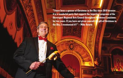 As parties and events go, it just doesn’t get any bigger, any flashier or more fun than Shreveport Regional Arts Council’s (SRAC) biennial fundraiser, Christmas in the Sky. This year’s Broadway theme is guaranteed to absolutely enthrall all attendees. You aren’t just a guest – you are a star, part of an immersive experience that stimulates all your senses from the moment you arrive. Light shows, live music, dancers and exotic theatrical performances, 10 stages and more than 100 spectacularly costumed characters bring the 17 incredibly designed Broadway-themed sets to life – larger than life.