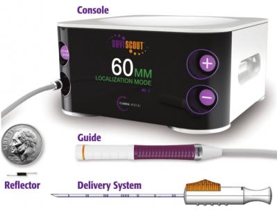 SCOUT is “a tiny, non-radioactive, wire-free, seedlike device that is implanted into the breast to assist surgeons in localizing an abnormality in the breast that needs to be removed,” says Dr. Heather Bracey, diagnostic radiologist. “It is easily placed under local anesthesia by either ultrasound or mammographic guidance. The site is then bandaged, and the patient goes home to await her surgery with no limitations. On the day of surgery, a console is used to send a radar signal to the device, and it, in turn, reflects back that signal in an audible beep. This lets the surgeon know where the abnormality that needs to be removed is located.”