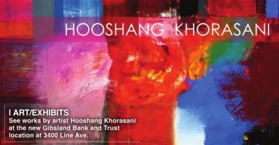 THROUGH APRIL 30: HOOSHANG KHORASANI EXIBIT. Fourteen large abstract paintings by the artist are on display at the new Gibsland Bank & Trust location at 3400 Line Ave., Shreveport