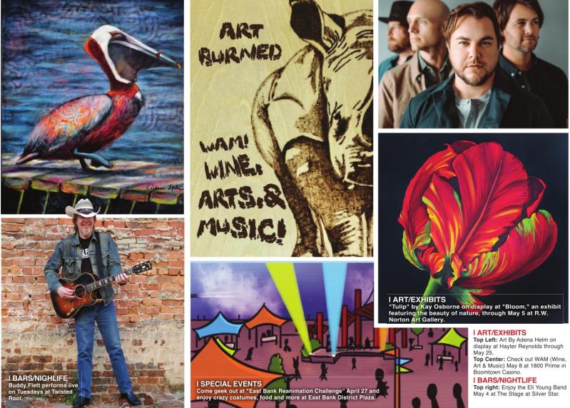 THROUGH MAY 25: BIZ ART. A free family event featuring local artists. April’s artist of the month is Adena Helm. 5-7 p.m. Hayter Reynolds, LLC, 9045 Ellerbe Road, Ste. 103, Shreveport. Call 698-3000.
