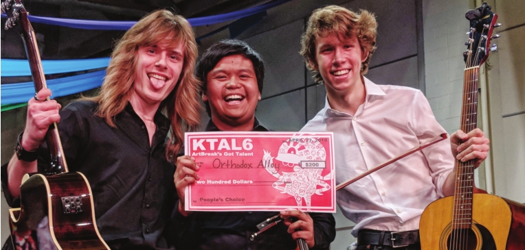 The 2018 KTAL-6 ArtBreak’s Got Talent Show winner was the Caddo Magnet High School musical group “Orthodox Alloy” (Randon Ladner, Johnum Palado, and Will Wright), which not only won Best of Show in the competition, but also won the $200 People’s Choice award. Other winners included: Best of High School Joshua Flippo, Best of Middle School Sachiri Henderson, and Best of Elementary Kennedy Haviland.