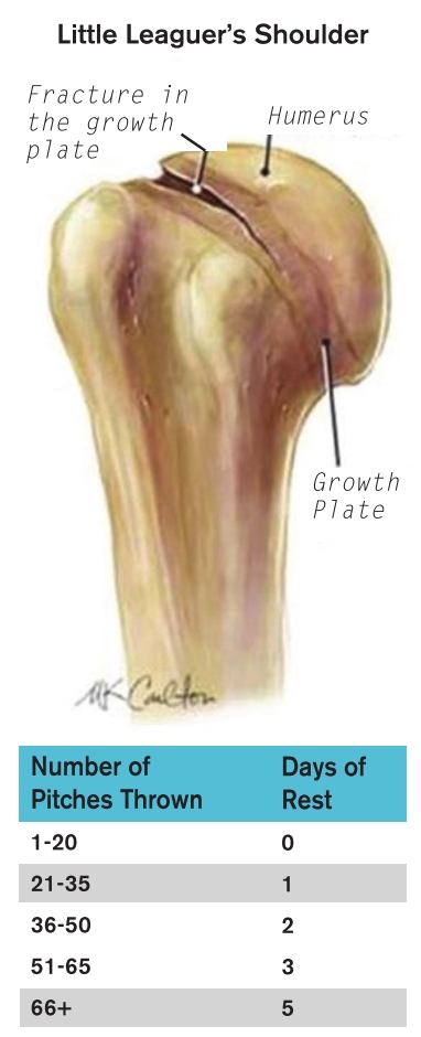 Little league shoulder is an overuse injury caused by stress to the growth plate of the humerus. This is most commonly seen in youth overhand pitchers ages 11 to 16. Causes of this injury include poor throwing mechanics, muscle imbalance and repetitive overhand throwing without proper rest. The child will often describe deep shoulder pain and weakness. There is a risk of growth plate damage if left untreated. Thankfully, the vast majority of these cases will improve with proper rest and avoidance of throwing. Once pain free, throwers can gradually return to their sport after participating in a formal throwing program supervised by a physical therapist.