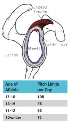 • Follow appropriate rest and pitch count guidelines Recommended pitch counts by age and associated rest periods (see diagrams below)