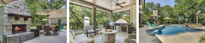 A patio off of the children’s den leads to the backyard with a brick-andstone outdoor fireplace. There is also a swimming pool and hot tub constructed by Blue Haven Pools & Spas. The family enjoys spending a lot of time outdoors, and April says the children swim almost every day.