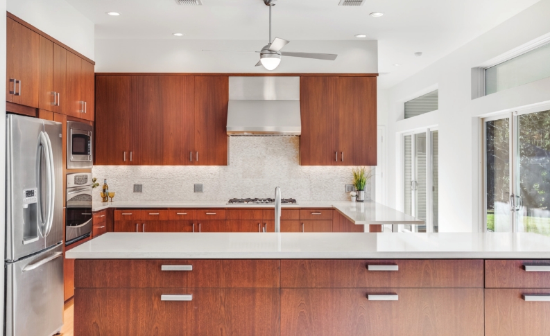 Efficiently modern, the sleek kitchen is a dream for the culinary-inspired.