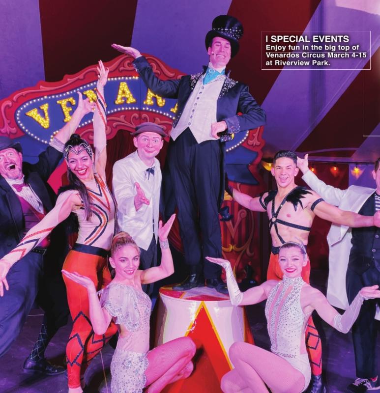 MARCH 4-15: VENARDOS CIRCUS. A Broadwaystyle animal free circus that has been reinvented for the next generation. $25, adults; $15, 12 and under. Riverview Park, 601 Clyde Fant Pkwy., Shreveport. Visit www.venardoscircus.com.