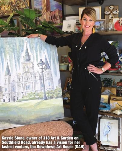 She has learned a great deal from friend and mentor James Michalopoulos, a New Orleans painter and publicist who owns a gallery in the French Quarter. Michalopoulos, an internationally known artist, is a supporter of downtowns, of creating beauty where there was blight. His input has helped guide the next chapter in Cassie’s life. That chapter started one night when Cassie met Jim Malsch, the new owner of the Andress Ford Building on Crockett Street downtown. Malsch wanted to talk to Cassie about his new retail space, 2,500 square feet on the ground floor of his soon-to-be-renovated historic building. Michalopoulos encour aged her to consider the opportunity, and the more she thought about it, the more intrigued she became. “This could be a legacy,” she told me. “The thought of being in the middle of bringing something back, of being an early adapter and risktaker is very appealing. I’ve got no fear of hard work and coming up with a strategy.”