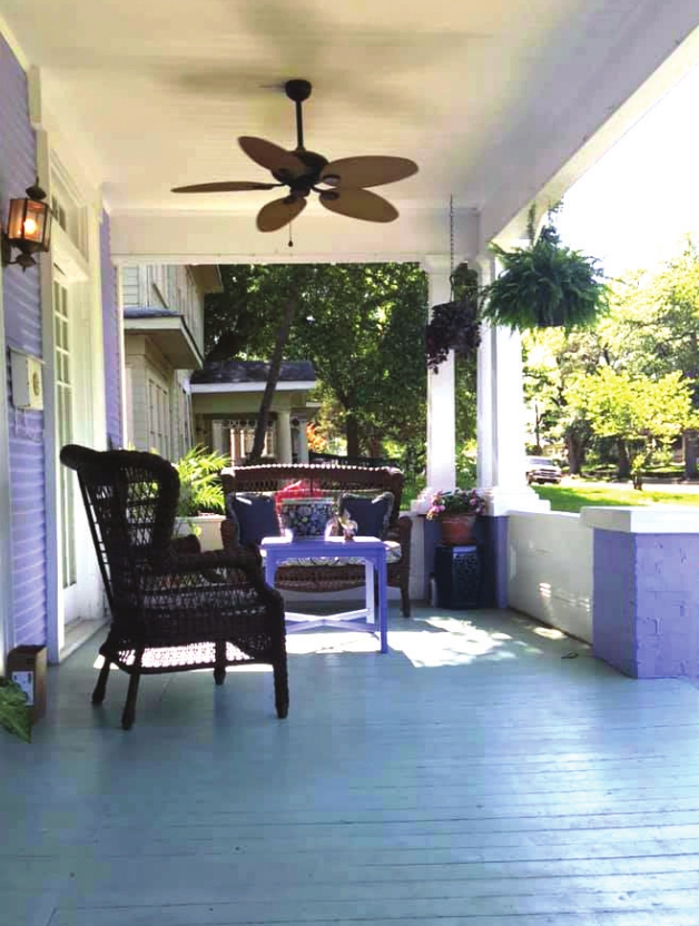 We love our c. 1920 cottage just off Line Avenue, sitting on cypress piers and sporting its original wood siding. It’s not your average arts & craft or Sears mailorder kit but instead looks like it was plucked from a New Orleans neighborhood just off Canal Street and set upon our lot. Our onestory is part double shotgun, part European townhome. The scale of every bit of it is just delicious, from its small spaces with tall ceilings to the two extra sunrooms at the front and back of the house. It has too few closets, but oh, those inlaid hardwood floors. Of course, our home’s crowning glory is the deep front porch with two sets of French doors that open into a wide living room spanning the width of the house.