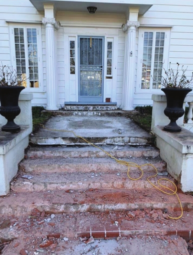 The re-do of the walkway and stairs took two weeks, but Cook’s crew has been completing various projects at the home during the past year. He says the addition of a large brick patio behind the original retaining wall in front of the house is in the works. Grass currently fills the target area. The creation of the patio will add functional space for the homeowners to put outdoor furniture and sit and enjoy their property.