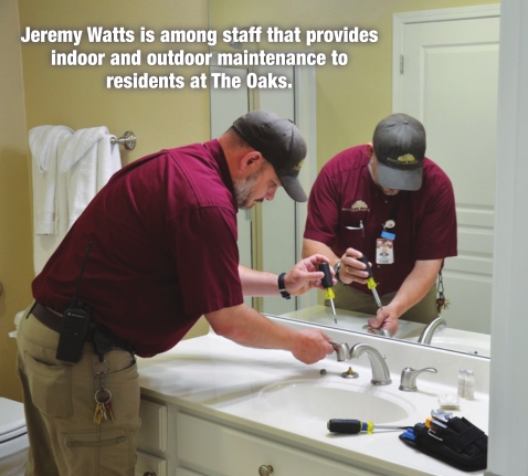 In a house, if something needs to be repaired, you do it yourself or you wait on a repairman, but not at The Oaks. If you have a problem, you pick up the phone, and it’s taken care of. “We offer peace of mind,” says James Parkerson, maintenance manager. “If there is ever any unforeseen issue, a maintenance tech is available to help 24/7.”