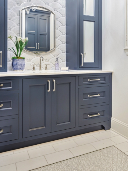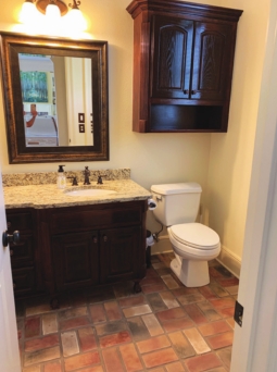Knicely worked with Katie Stanfield at The Cottage for the custom cabinet and tile design and appliance selection. The prefinished cabinetry from Bentwood Luxury Kitchens was designed to meet the customers’ needs and maximize the available storage space. The custom storage options employ features that make life a little easier. Plate drawers, spice racks, a pullout corner cabinet for easy storage access and a dishwasher drawer for smaller loads are efficient uses of the space and make simple work of remaining organized. “Both homeowners enjoy cooking, and their input was an integral part of the design process,” said Knicely.