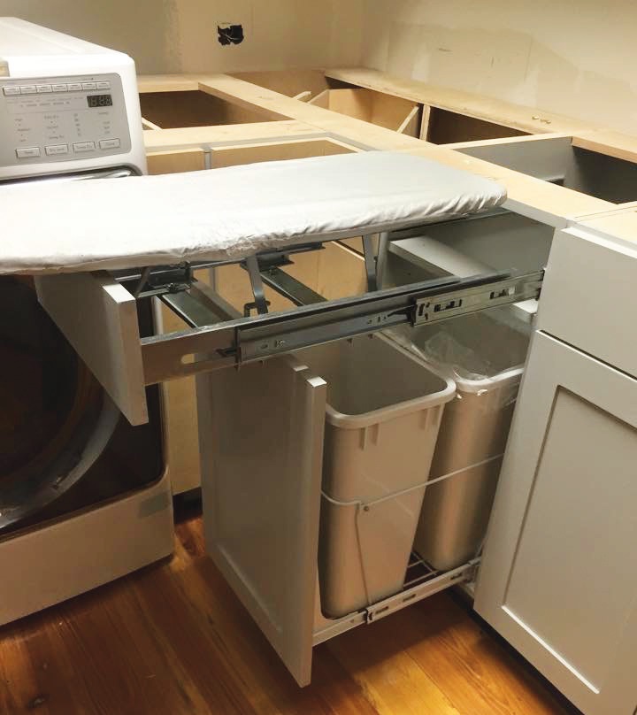 sight. The cans are put on a pull-out system for ease of use. Appliance