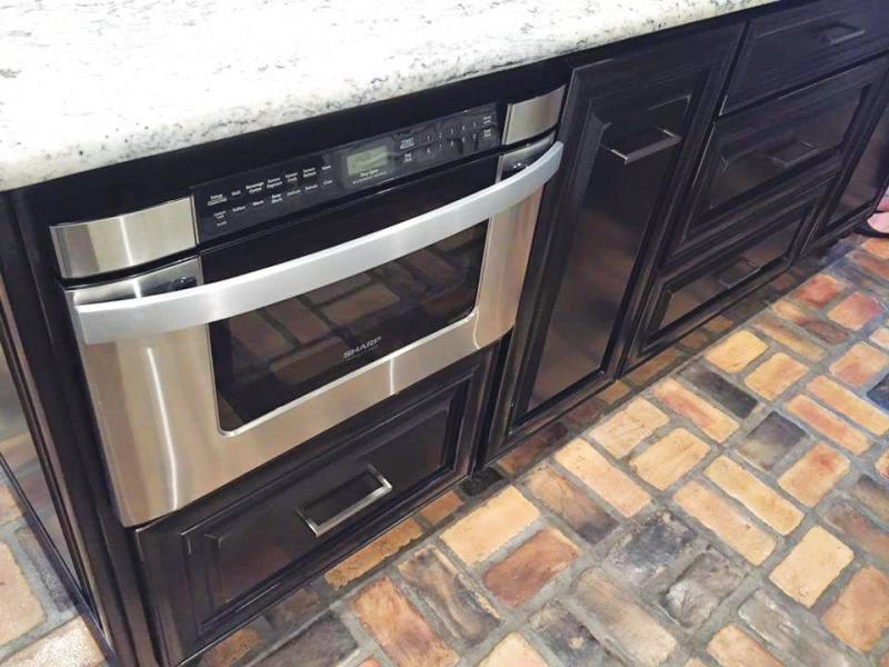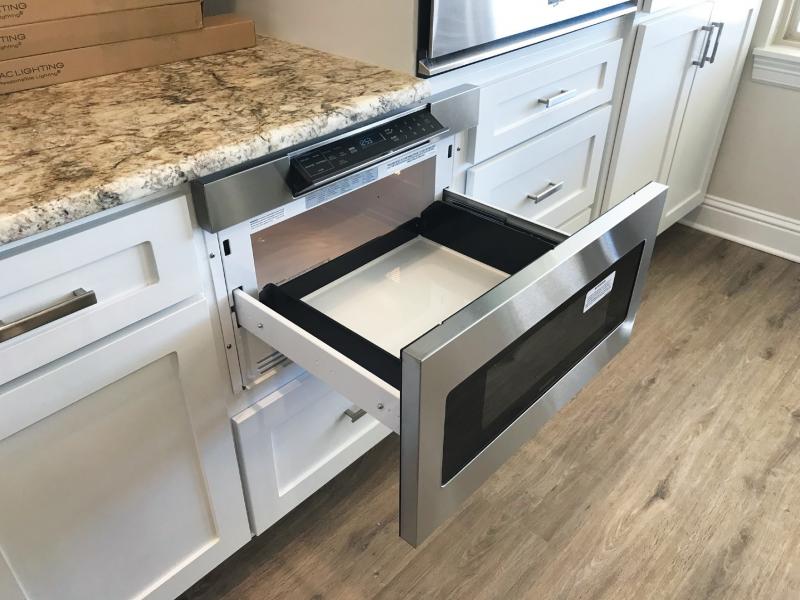 access to the same, such as a drawer for the microwave and hidden plugs.