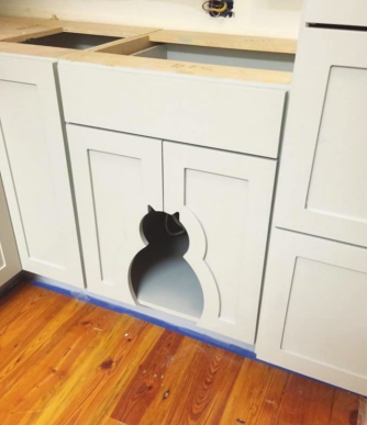 aesthetic. “I build cabinets, so I would love to say the cabinets are