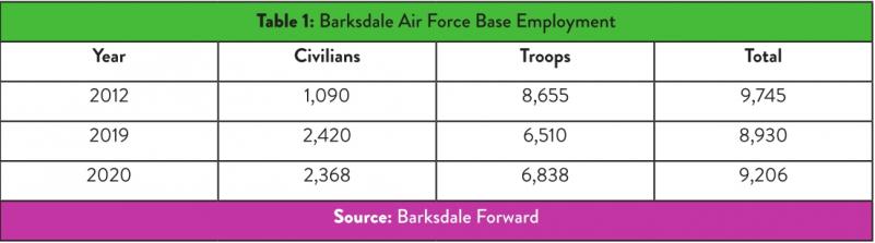 employment at Barksdale, as shown in Table 1 (page 6).