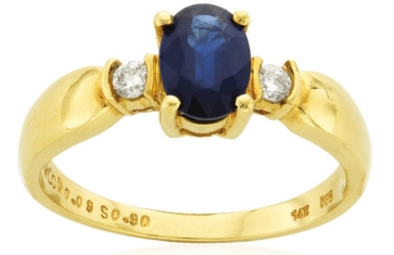 14K Yellow Gold Ring with an oval Sapphire accented by a round Diamond on each side.