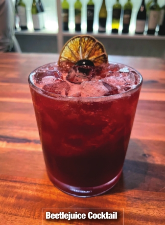 • Beetlejuice cocktail – Beet-infused vodka, Pierre Ferrand Dry Curacao, lime, hibiscus syrup and strawberry shrub.