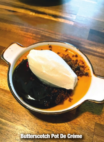 • Butterscotch Pot de Crème – This is their most popular dessert by far – butterscotch pudding, topped with warm chocolate fudge, brown sugar streusel and whipped cream.