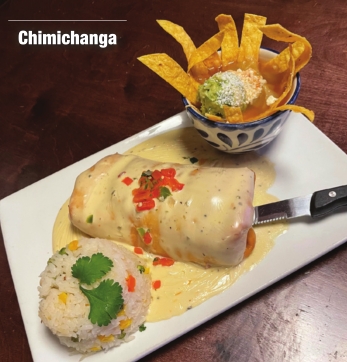 Chimichanga – Flour tortilla stuffed with your choice of meat, then deep-fried with a side of sauce. You can choose from grilled chicken with sour cream sauce, pulled pork with ranchero sauce, smoked brisket with salsa Verde, or steak tenderloin with salsa Verde. If you’re adventurous like me, get the tenderloin and have it topped with queso instead. You won’t be disappointed. All their entrees come with rice and beans, but you can upgrade one of your sides to tortilla soup, which I would highly recommend.