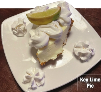 Key Lime Pie – Just the right amount of zesty lime with a delicious graham cracker crust, topped with whipped cream.