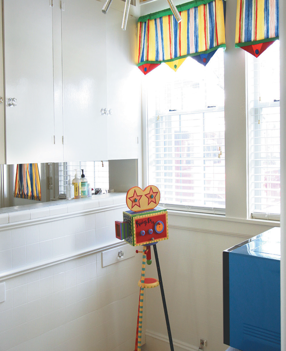 Upon entering the cottage, the bold use of color throughout the space stands out. A waiting area for clients features funky green and blue recliners with a whimsical shape from Uniquely Yours on Youree Drive. “I tell people this is a Uniquely Yours mini-showroom. Most everything in here came from Uniquely Yours,” she said.