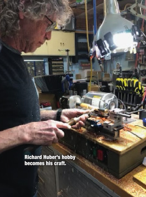 He also makes wine bottle stoppers. Huber’s latest customer ordered 11 pens, so if you are looking for Christmas gifts, contact him early.