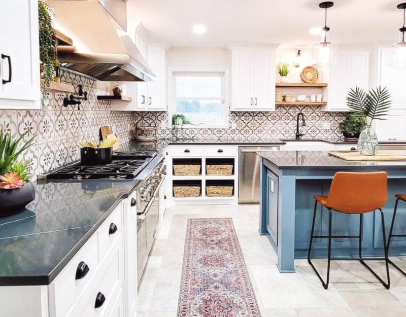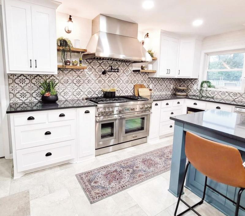 halfpatterned and half-white vintage brick on the top. The shaker-style