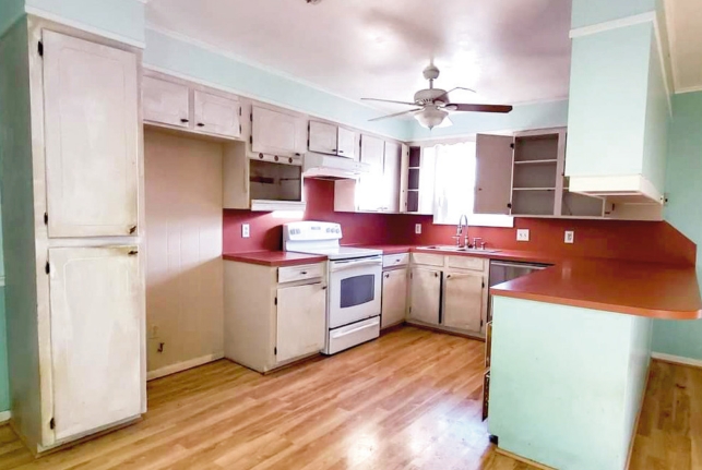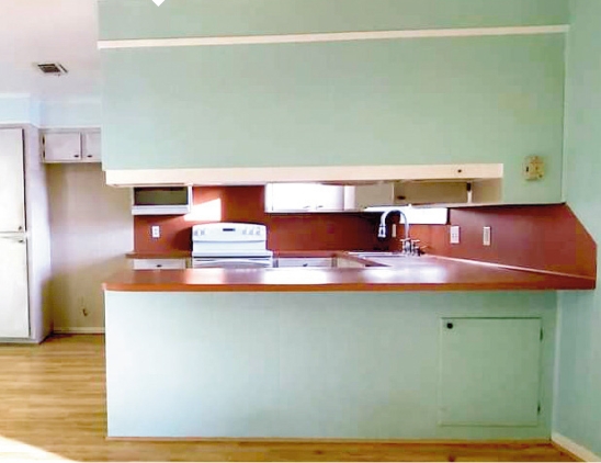 inviting new look for its outdated kitchen. Overhead cabinets were