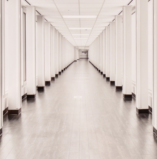 curiosity or caution, the rhythm of the columns flanking the hallway