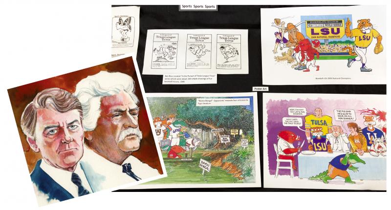 The exhibit also includes some of Rice’s caricatures and political cartoons.