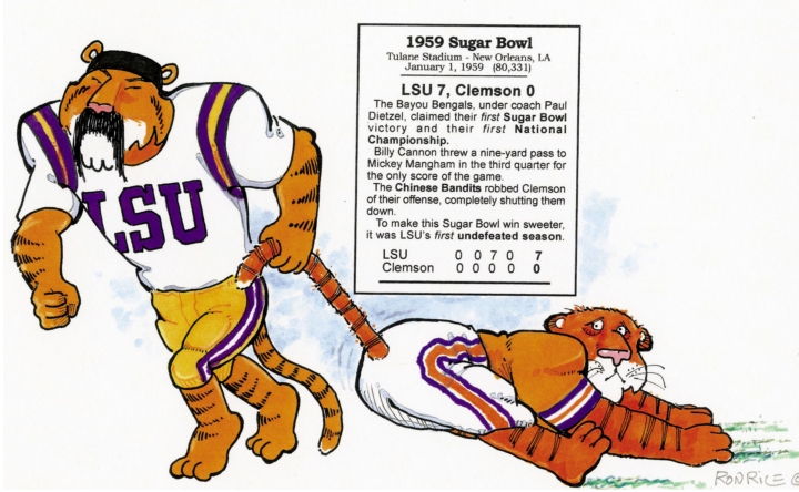 And if baseball was Rice’s favorite sport, LSU was his favorite school. And he couldn’t draw LSU art without drawing something football-related.