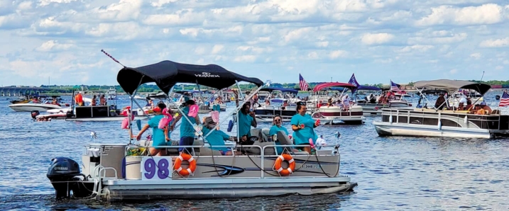 “We’re trying to grow our flotilla because we started raising money to give away. You know, it used to be just a big party on the lake. Then probably about six years ago we took a turn. We wanted it to be more family-friendly and not just fun in the sun.”