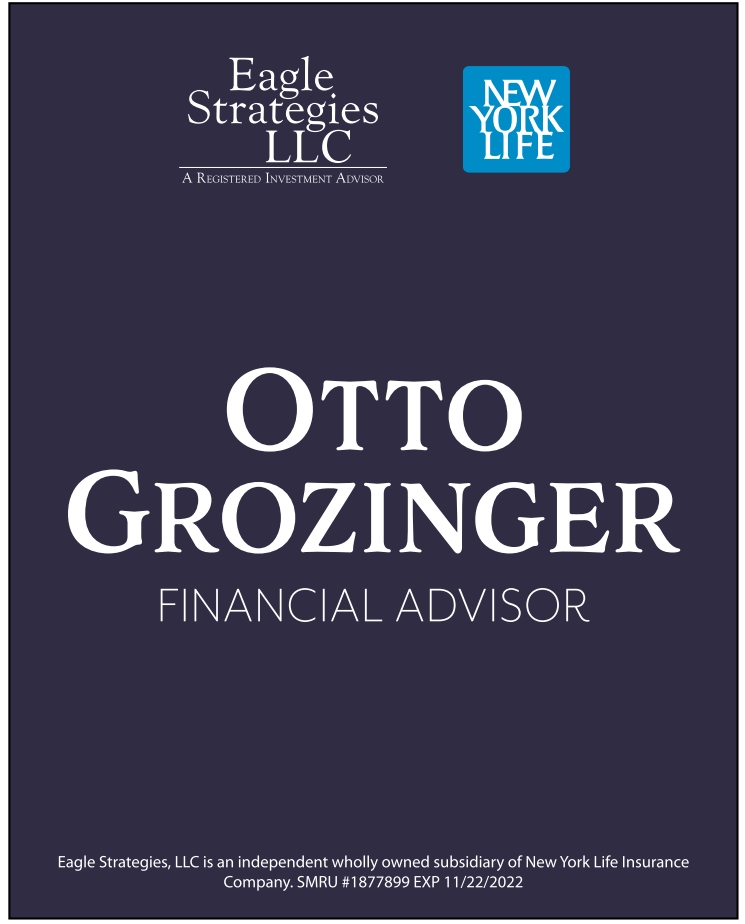 NOTE: If at any time you would like to change your ad message, click the “Reset Template" link on the left to clear your selections and start over. It's simple to customize this ad for your location. A REGISTERED INVESTMENT ADVISOR 1. Click "Change Document Name" at the top of the page and update to include size, date and abbreviated publication name. 2. Ensure you've selected the correct location(s). 3. Double-click “Select Ad Message" on the left, below the "Reset Template" link, to access the customization panel. 4. In the pop-out Otto box, select your message from the options at the top of the page. 5. Select your language from the drop-down menu and click “Apply." Grozinger 6. Click "Preview" to review your ad before downloading or saving. Finishing Your Ad: FINANCIAL ADVISOR Click "Finish" to generate a PDF with or without crop marks. Then, click “Download" and select “Original" or “Moderate" for a print-ready file. OR, click “Save" to continue working later. Your ad will appear in My Documents > Drafts. Eagle Strategies, LLC is an independent wholly owned subsidiary of New York Life Insurance Company. SMRU #1877899 EXP 11/22/2022