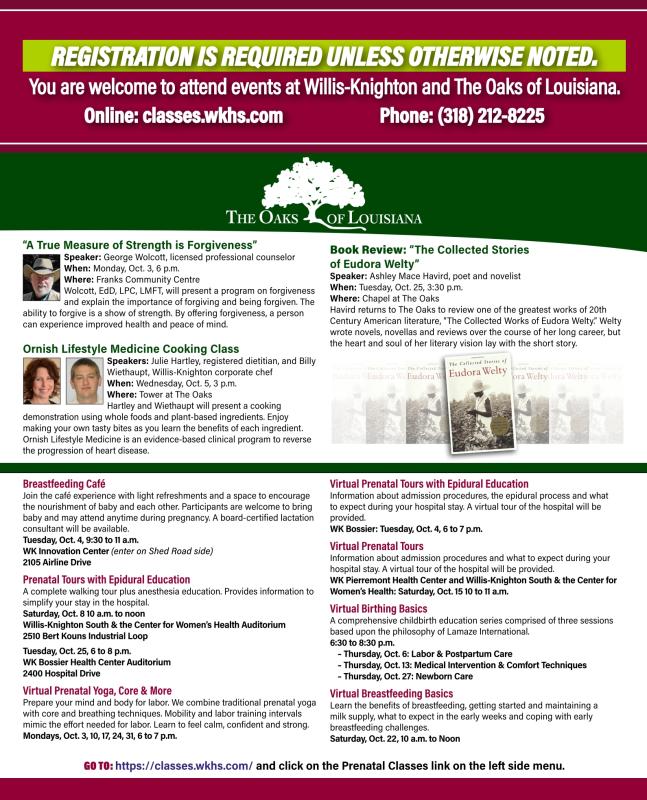 REGISTRATION IS REQUIRED UNLESS OTHERWISE NOTED.