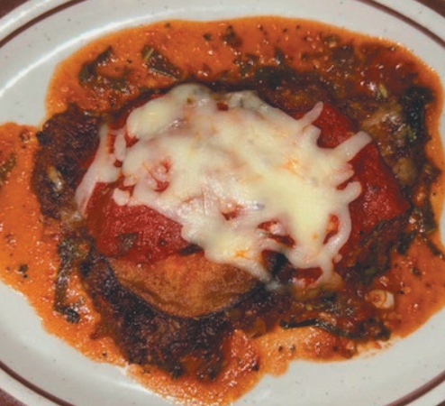 – Veal Chop Cassanova (Tenderized breaded veal chop and eggplant sauteed with tomato sauce, then topped with mozzarella cheese and baked to a bubbly golden brown.)
