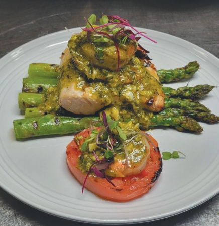– Chicken Monte Cassino (Grilled chicken breast topped with creole mustard, mushrooms and white wine cream sauce.)