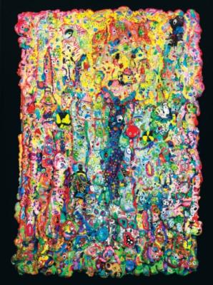Selecting the artist who combined all the qualities of these artists into one body of work was an easy task. Michael H. Miller’s painting “Living and Dying in the Nuclear Winter” combines abstraction, craft and materiality into a really great work of art. It lives between the Art Brut movement and self-taught outsider-ness. It is successful because of the bold and daring ways in which painting, drawing, experimentation and risk come together to make a beautiful work of art.