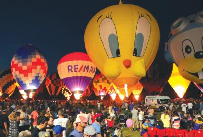 Around 8:30 (sunset), pilots will fire up their burners, illuminating the colorful balloons against the darkness.