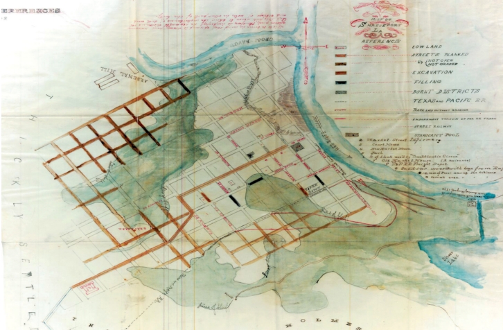 It provides an interesting perspective to consider that in 1873, little was known about the cause of yellow fever, even though it was a frequent visitor nearly every summer on record to many cities of the United States. Medical experts of the era believed it was person-to-person transmittable, not understanding that the virus requires a third vector – the mosquito. It is carried from person to person through the mosquito population feeding on humans; hence, its prevalence in the summer and early fall months. A University of Kentucky medical student named Augustine Booth came to Shreveport to study the outbreak and produced an interesting map showing areas of known infection, significant landmarks, and interestingly, he also noted areas of “stagnant water.” Although Booth did not fully understand the implications of this observation, he nevertheless documented something quite important for future medical science.