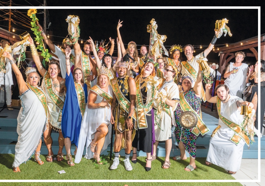 The Krewe of Highland is best known for its popular Mardi Gras reimagining. In 1994, they launched a family parade with a mission to promote the area’s historic beauty and bring neighbors outside of their homes to meet each other for a day full of wonderment. The zany parade’s popularity has exploded since its humble start, extending to three neighborhoods and attracting around 35,000 people this year. Its unusual throws are legendary, from packaged Halloween costumes and VHS tapes to ramen and pickles. Its success stems from decades of talented and devoted patrons, royalty, and volunteers, including Linda and Joe Dame, Robin Drury, Emily Hamann, Dillon Haynes, Rick John, Cliff LeBlanc, Lisa and Matthew Linn, Brandon Manning, Bob Marak, Michelle Marcotte, Bill McGill, Marsha Millican, Robin Ramsey, and Cyndie and Chuck Reid, just to name a few.