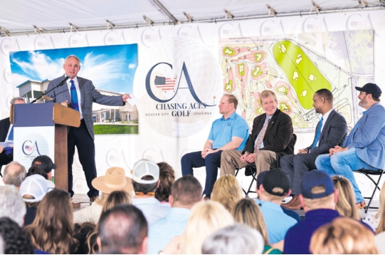 “What you’ll see moving forward is a chance for Bossier City, Shreveport and northwest Louisiana to be on the map for golf entertainment. You are going to see the evolution of golf entertainment right here. I heard two words that describe both John and Randy [Rogers] perfectly. They’re homegrown, and they’re persistent. So, you keep at it; we’re so proud of you.”