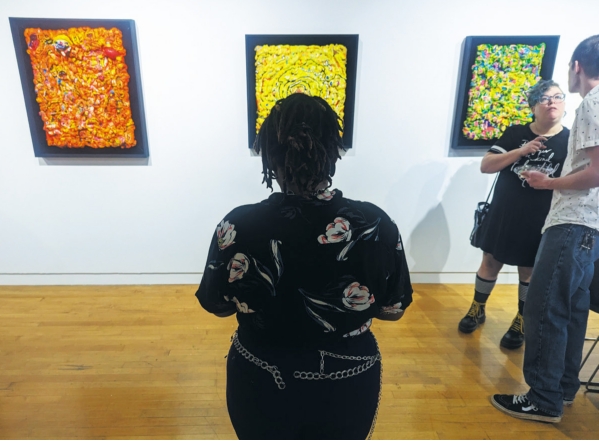 Critical Mass 12 attendee views Michael H. Miller’s collection, “Psycles.” Michael H. Miller’s painting ‘Living and Dying in the Nuclear Winter’ combines abstraction, craft and materiality into a really great work of art. It lives between the Art Brut movement and selftaught outsider-ness, and is successful because of the bold and daring ways in which painting, drawing, experimentation and risk come together to make a beautiful work of art.”