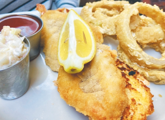 The Shrimp Buster. But if you’re not hungry enough for four butterfly-fried shrimp, you can order the Baby Shrimp Buster ($13.99). I’ve known my friend a long time, so I was surprised when she told me she had never had a Shrimp Buster. I was not surprised when she decided to have the baby version. She also chose to — for an extra $2 — substitute fries for onion rings. My friend had a Diet Coke ($2.99).