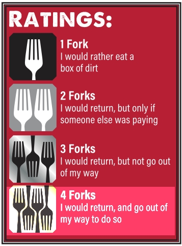 A once-thriving Texas Avenue, which runs east-west to Pierre Avenue, is lined with longsince vacant, crumbling buildings. If you’re going to Herby-K’s, you have to be going to Herby-K’s. And in giving it four forks, I will go back and go out of my way to do so.