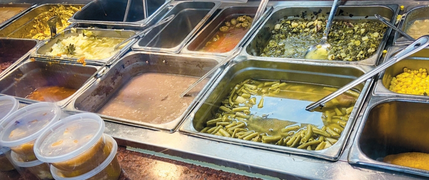 Taylor’s serving line and food selection Taylor’s Catering & Restaurant offers comfort food in a comfortable setting