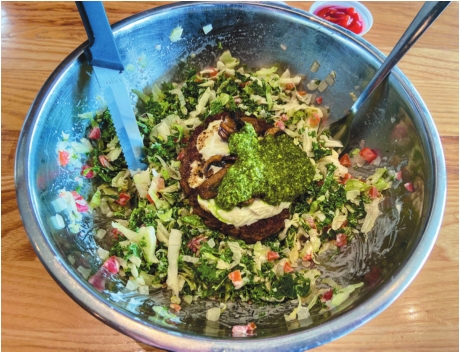 My Shroom Bowl was filled with all of the promised ingredients. Everything was mixed together except for the meat with pesto basil on top. It all tasted as good as I assumed a burger would taste without the extra bread calories.
