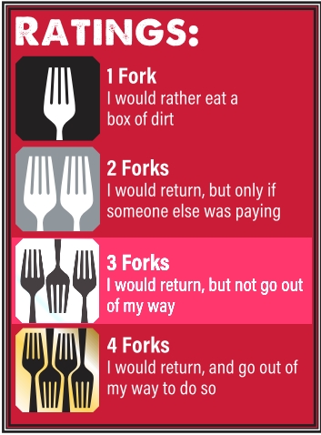 As promised, our “appetizer” came out first — five to 10 minutes before our meals. We were served a large bowl with fries, which is different from a large bowl of fries. Don’t get me wrong. There were plenty for two people, but it was like when you buy a big bag of chips, which only fills about three-quarters of the bag. The fries were thin-style and well-seasoned.