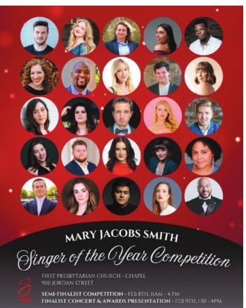 Shreveport Opera's Singer of the Year Competition: Semi-Finalist Competition Feb. 8, and Finalist Competition Feb. 9.